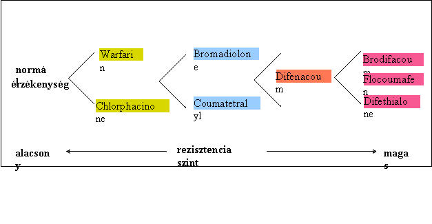 A kapott vizsgálatok eredményei alapján megállapítható egy un. Antikoaguláns hatóanyag hierarchia. Amennyiben egy magasabb rendű (hatékonyabb) antikoaguláns esetében kialakult a rezisztencia, úgy az annál alacsonyabb rendű valamennyi antikoaguláns esetében fennáll a rezisztencia. Ennek a rezisztenciának az alapját a warfarin képezi, e nélkül a többi antikoaguláns esetében sem beszélhetünk rezisztenciáról.